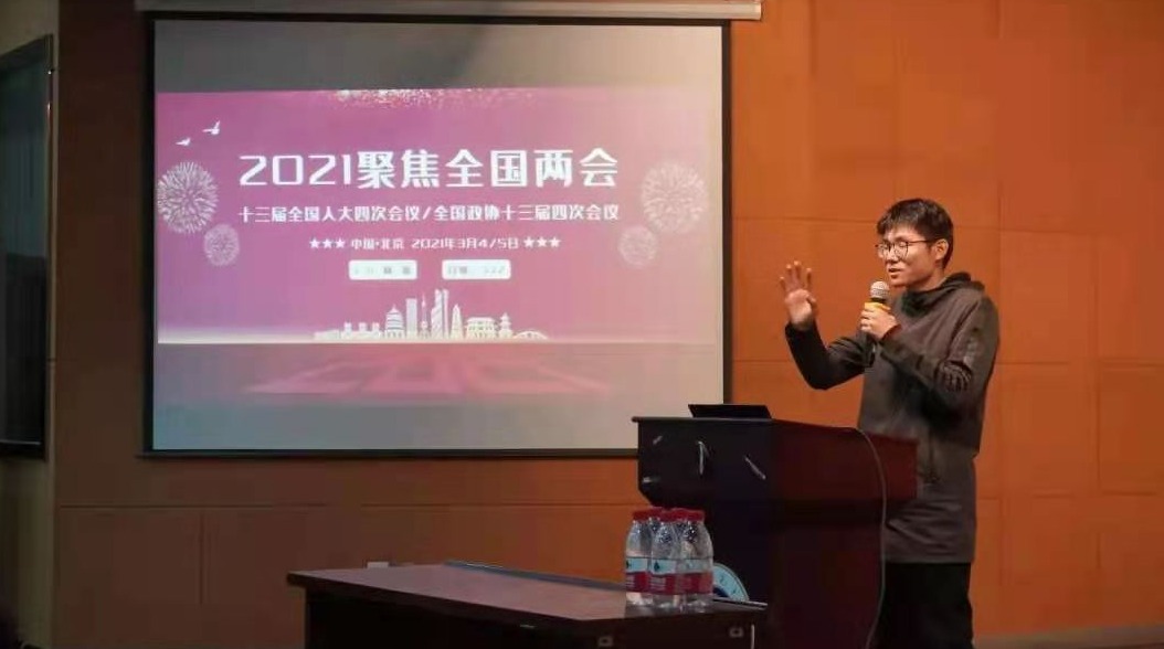 学习两会精神,不忘风雨征程。大会第一项议程,赵艺凡从五个层面为同学们介绍了两会有关的知识和今年两会中的一些焦点问题。赵艺凡同学在讲述两会知识的同时也和大家分享了自己的一些意见看法,体现了网新人敏锐的观察力、对家国大事的关注,得到了同学们的一致好评。