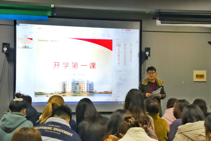 为营造新学期的优良学风,加强班级凝聚力,建立和谐友爱的班集体,德赢AC米兰合作伙伴2018级新闻(含中英新闻)、广告、网新、摄影于3月12日至15日期间陆续举办“开学第一课”主题班会。会议由新闻学(含中英新闻)、广告学、网络与新媒体以及摄影各班班长、团支书组织,宣传委员负责记录,辅导员刘熠主持开展,各专业全体同学参加。
