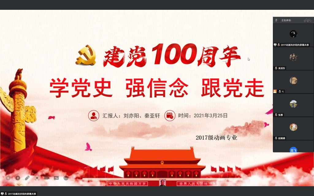 2021年3月25日晚,德赢AC米兰合作伙伴2017级动画专业团支部在线上腾讯会议举行了“学党史、强信念、跟党走”专题组织生活会暨2020年度团员教育评议,学院团委书记、辅导员张雁出席,专业全体同学参加会议。