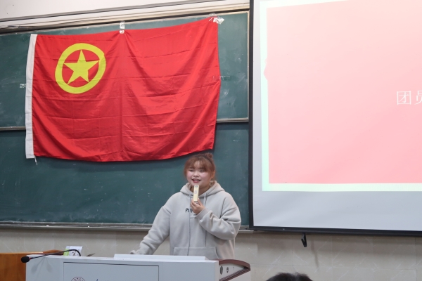 随后,毛玉婷对支部工作做出总结并汇报教育评议结果。她将支部工作总结概括为五点内容并作出详细汇报。第一,班子建设齐全。广告班团支部人员齐全,团支部设有支书一人,支委4人,团小组四个,支书称职,班长进入团支委为副书记。第二,团员管理有序无误。72名同学中其中68人为团员,59人已递交入党申请书,31位入党积极分子,且团员信息均已录入智慧团建系统。第三,班级团支部积极开展活动。在一个多学期的时间里,团支部开展了主题团日活动36次,线下团课开展次数6次,召开了10次团支委会。第四,团支部组织体系健全。设有四个团小组,在开展各项团支部活动时认真落实团旗、团徽、团歌使用管理规定要求。第五,班级团员发挥先锋模范作用。多数团员在各类活动中获奖,入积同学积极参加配合班级工作,积极开展志愿服务活动,主动向党组织推荐优秀团员,与党组织衔接顺畅。汇报结束后,毛玉婷向同学们展示了本次教育评议结果,并将其转发至班群进行公示。她说,作为历年来广告专业人数最多的班级,班级工作会更加难做,但在班委和团支委踏实工作、同学们的积极配合下,广告班的团支部建设越来越成熟,也祝愿19级广告学团支部越来越好。