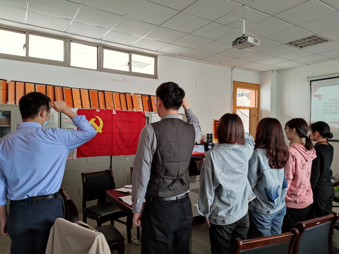 会议在激昂的国歌声中开始,支部书记马星宇宣布此次支部大会出席人数,支委梁嘉宣读党委关于批准预备党员的通知并对支部新接收的预备党员集中发放党徽、《党费证》。8名新接收的预备党员由支部组织委员周乃亮带领面向党旗宣誓,并进行表态,表示在今后的学习和生活中将继续不断提高自身素质,严于律己,不断向党组织靠拢。预备党员潘埼、正式党员潘静分别作为新老党员代表发言,“其身正,不令而行,其身不正,虽令不行”,新党员以老党员为榜样完善自身,老党员以新党员为镜子审视自身,在批评与自我批评中不断进步。支部书记马星宇向新接收的预备党员同志们表示欢迎和祝贺,并期望全体党员要真正起到良好的模范带头作用;在工作学习挑大梁担责任,克服惰性,要举重若轻,不要拈轻怕重;用真心服务身边的同学群众,在今后的班级事务、理论学习中求真务实、多做贡献。