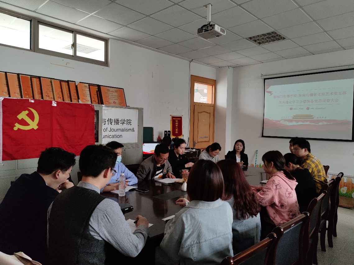 4月24日上午适逢周末,为充分考虑毕业班学生党员在外求职、实习实际,新闻与播音主持本科生党支部把4月的组织生活安排在了当天上午。本次支部大会内容丰富、环节有序,全体党员师生见证了新一批发展党员的集体宣誓、开展了集中理论学习、观察了时政新闻视频。本次会议由支部书记马星宇主持。