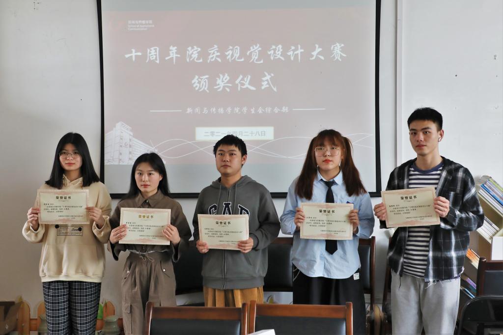 自发布活动通知开始,学院陆续收到了许多同学的作品,包括院庆标识、院庆文创和海报作品,并于今年3月28日开始在院公众号发布微信推文,由广大师生进行评比投票。经过激烈角逐,获奖名单正式出炉:19级广告学专业魏炎秋、20级动画专业徐雨晴获一等奖;19级广告学聂银桂、20级新闻传播学类刘新程等五名同学获二等奖;18级新闻学专业李雪婷、18级摄影专业胡建平等8名同学获三等奖;19级广告学专业陈紫晶、20级新闻传播学类于慧等12名同学获优秀奖。