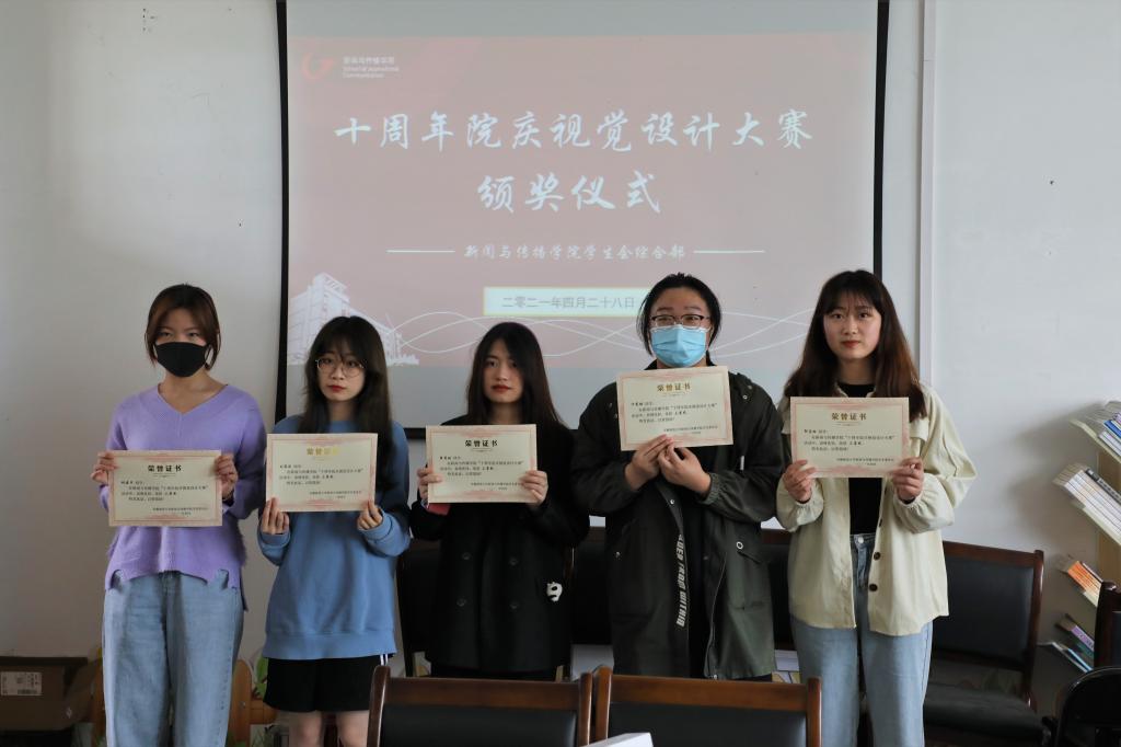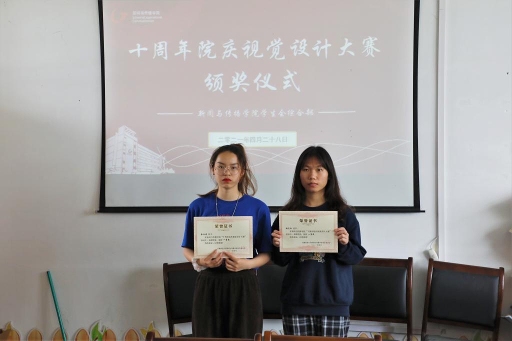 (本网讯文/何思雨 图/窦震宇、王洁)2020年,德赢AC米兰合作伙伴迎来了十周年院庆。为了更好的回顾学院办学历程、传承新传精神,我院面向全院学生公开征集院庆文创作品。现评比过程结束,我院于2021年4月28日在院楼三楼会议室举行院庆视觉设计大赛颁奖仪式,院学生会综合部部长郭宜璐、副部长周梦雅为获奖人员颁奖。