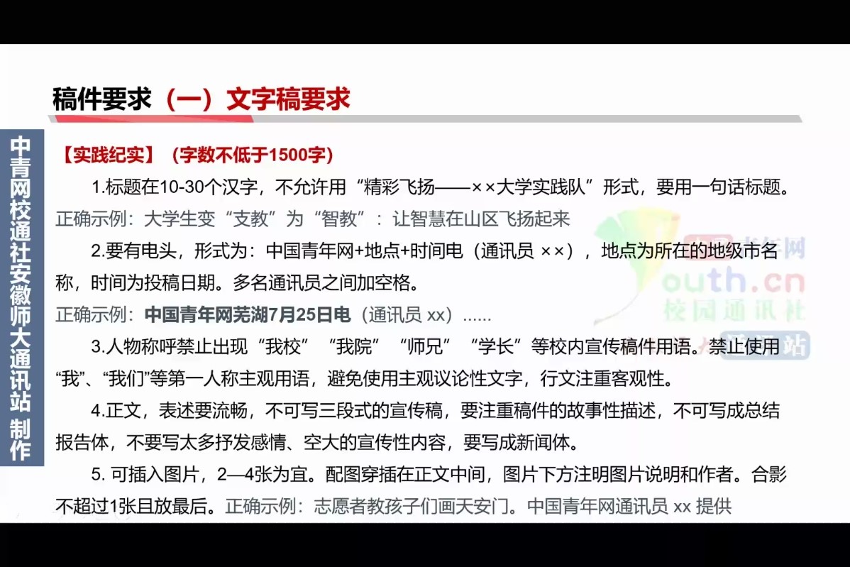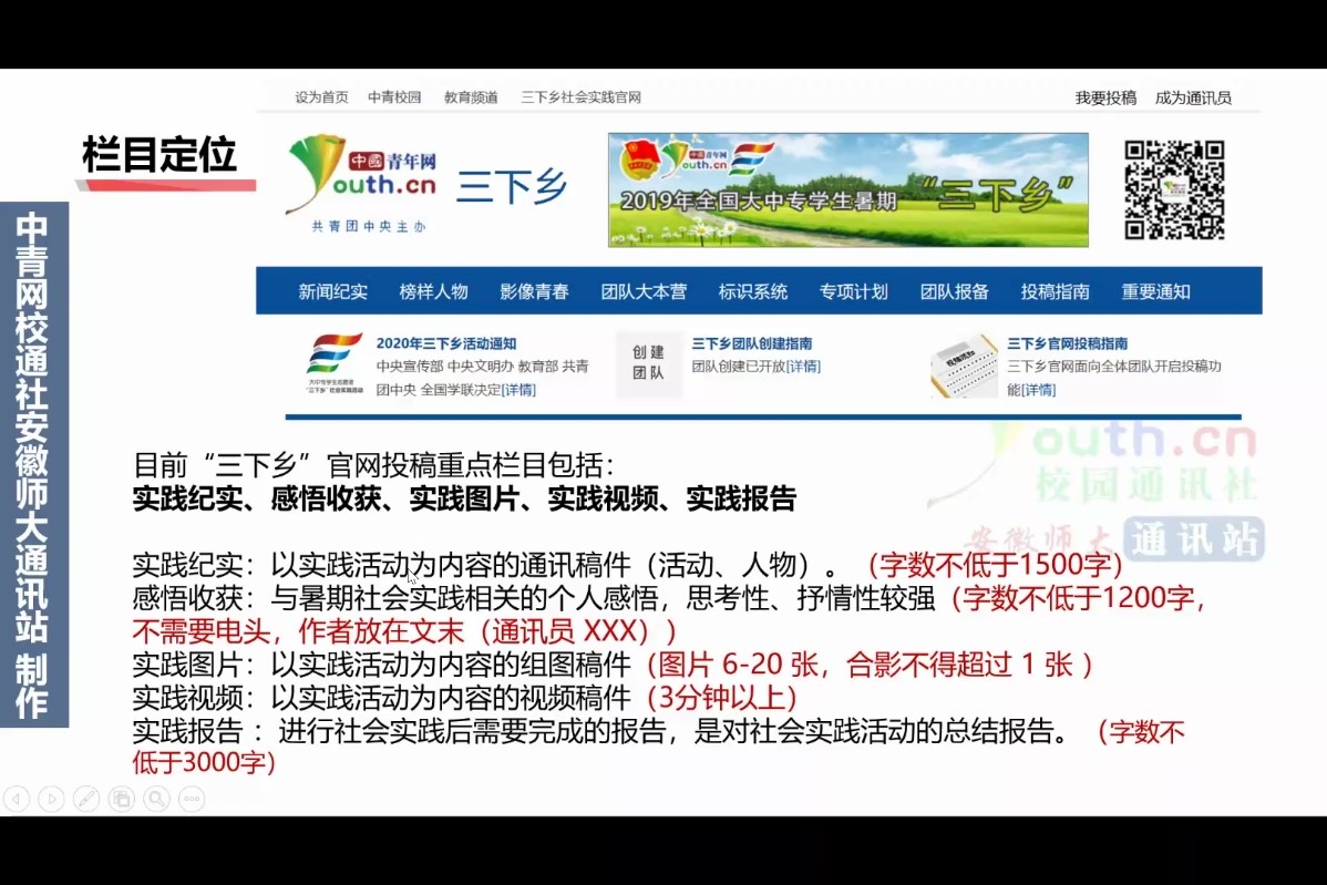 李林向各支暑期社会实践队伍分别介绍了关于中国大学生在线vwin德赢ac米兰官方网校园通讯站投稿的前期要求、投稿方式和稿件审核等工作,钱佳佳为各支队伍做了关于中国青年网三下乡活动的专题培训,从培训导入到平台介绍、从栏目定位到团队报备细致地为同学们介绍了活动的前期工作和中期要求,其中着重指出了稿件成功发表的三个基本要求,强调出“实践纪实”的重要性。