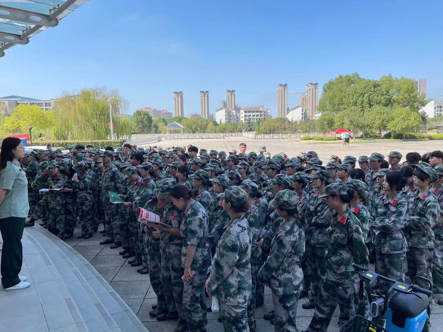 9月30日上午,2021级航空服务艺术与管理专业1、2班在军训会操结束后,就近就便进行了国庆假期安全教育管理,辅导员张雁、生活辅导员俞应芬参会。