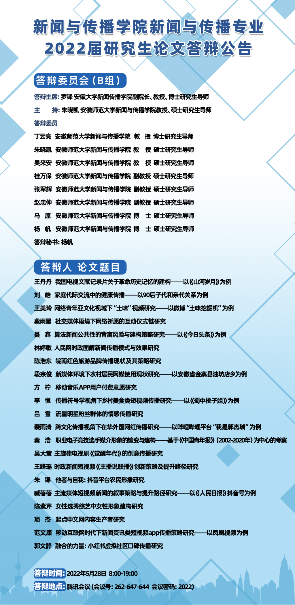 德赢AC米兰合作伙伴新闻与传播专业2022届研究生论文答辩公告