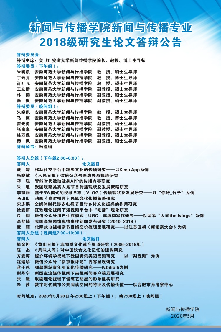 注:答辩采用线上模式,使用腾讯视频平台。