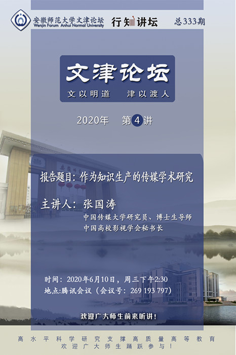 [学术预告]文津讲坛2020年第4讲:作为知识生产的传媒学术研究