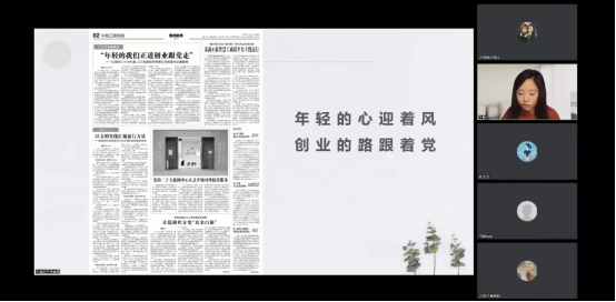 19点30整,报告会正式开始。作为中华工商时报的记者,牛畅从自身的实践经历出发就校园学习和媒体工作两个方面进行了经验分享。在学习方面,牛畅提到了三点:一是要珍惜学习的机会,珍惜身边的良师益友,二是要珍惜时间和精力,在有限的时间里充实自我,三是要投身实践,勇敢走出校园。牛畅认为扎实的本科学习将为今后升学或就业打下良好基础,因此建议同学们在校园内拓展阅读面,有意识地培养和积累学术能力,给自己创造未来发展的可能性。仅仅依靠书本中的知识仍是不够的,牛畅还鼓励同学们多培养自身的开拓精神,敢于尝试,于实践中感悟和成长。在工作方面,牛畅分享了自己从事媒体工作的经历,并介绍了她现在所在的工作单位即中华工商时报的一些基本情况。她还特别提到了作为一名党员,非常荣幸能够参与党的二十大的报道,同时分享了一些采访经历,表示新闻工作者要用情用力投入工作,时刻牢记责任在先。