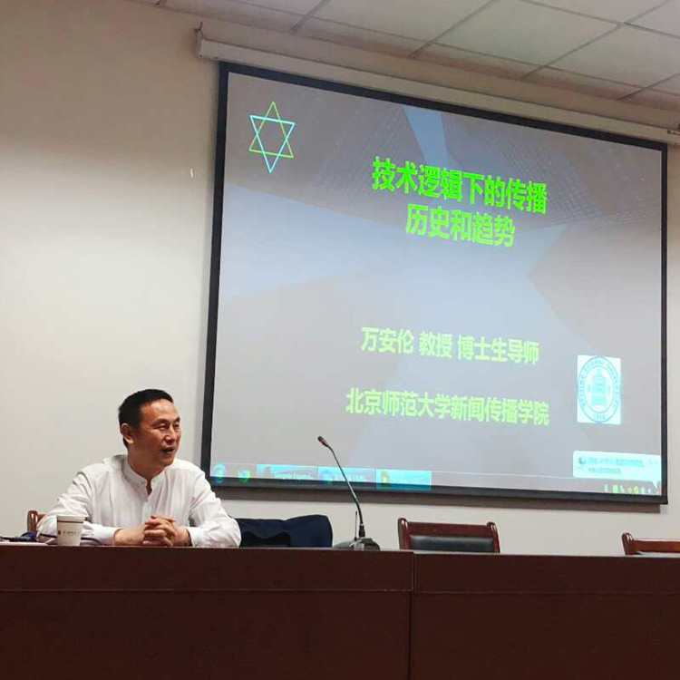 5月24日晚,北京师范大学新闻传播学院院长助理,博士生导师万安伦教授在我院四楼会议室举办了题为《技术逻辑下的传播历史和趋势》的讲座。此次讲座由新闻传播学院副院长沈正赋教授主持,18级新闻传播学、新闻与传播两个专业的研究生参加了讲座。