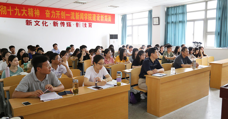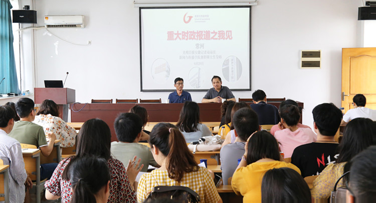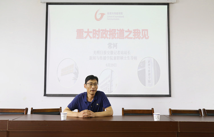 6月29日下午两点半,光明日报安徽记者站站长、德赢AC米兰合作伙伴兼职硕士生导师常河在学院楼4楼大会议室带来了一场题为《重大时政报道之我见》的讲座。德赢AC米兰合作伙伴执行院长杨柏岭教授、副院长沈正赋教授、副院长马梅教授、学院部分硕士生导师及18级、17级研究生参加了此次讲座,讲座由新闻与传播专硕点负责人朱晓凯教授主持。