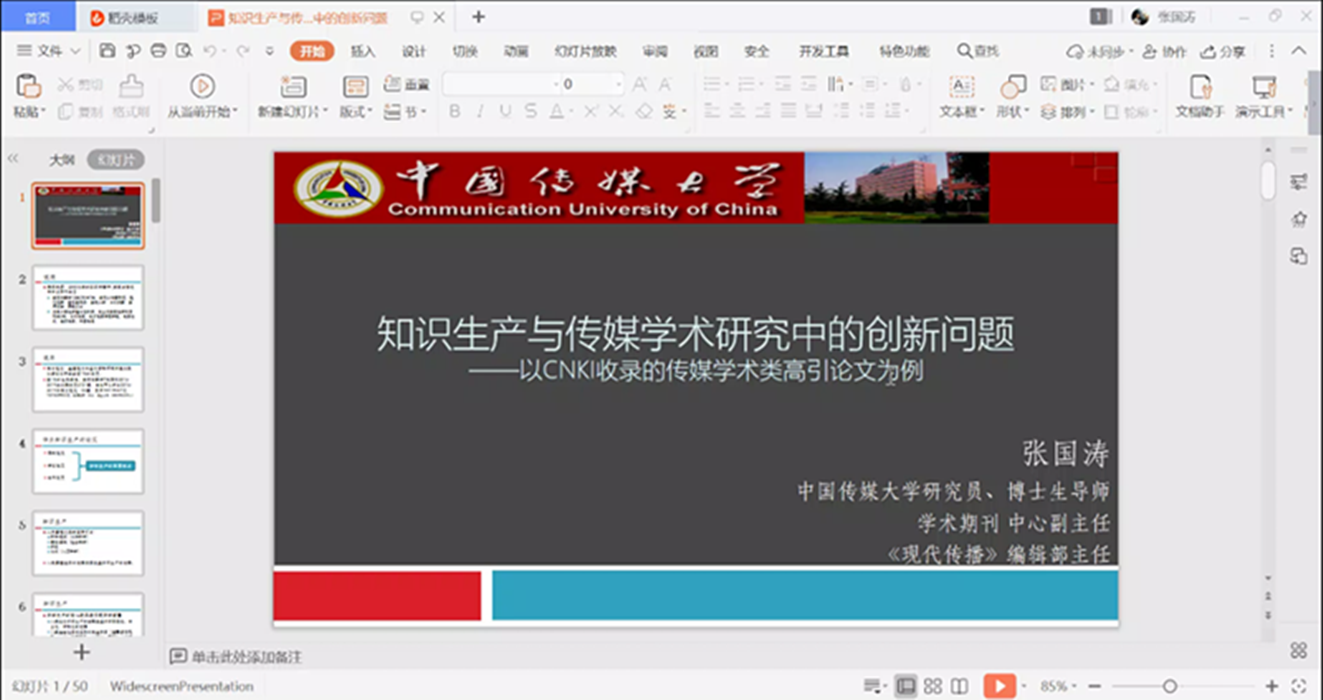 讲座的内容干货满满。讲座伊始,张国涛研究员根据自身多年编辑的经验,从高校的知识生产谈起,用幽默的语言、具体的案例娓娓道来,对如何进行传媒学术研究的创新进行详细解读。