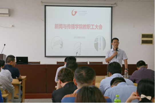 张师帅从常态化疫情防控、师德师风建设、学科发展、党团建设等方面对新学期工作进行了专门部署,并强调指出本学期学院将围绕学科改革振兴行动计划与基础教育振兴行动计划,开启一系列教研与科研任务,希望全体教职工以舍我其谁的责任感和时不我待的紧迫感,为学院奋进一流新闻学院目标任务贡献智慧、贡献力量。