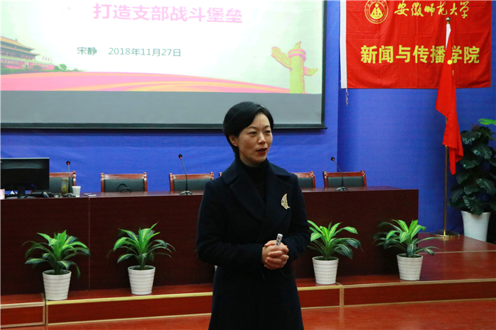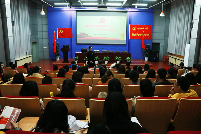课上,宋静用讲解、提问、探讨等互动的方式,分四个单元,为学生党员们带来了一场生动的党课。在“一场大会与新传先锋”单元中,宋静解读了8月21日习近平总书记在全国宣传思想工作会议上的讲话精神,勉励广大新传党员要在“四讲四有”的合格党员基础上发挥专业优势,按照政治过硬、本领高强、求实创新、能打胜仗的要求,坚持讲好中国故事,传播好中国声音;围绕“一部条例与战斗堡垒”,宋静结合中共中央最新印发的《中国共产党党支部工作条例(试行)》,带领大家学习了支部建议要求,强调党支部要认真落实和履行教育党员、管理党员、监督党员和组织群众、宣传群众、凝聚群众、服务群众的职责,充分发挥战斗堡垒作用;在“一次修订与自查自省”主题中,宋静结合学生党员应知尽知,带领大家重温了新修订的《中国共产党党员纪律处分条例》,分析了修改的重要意义和目的,强调学生党员们要牢固增强“四个意识”,坚定“四个自信”,经常开展自查自省、自查自纠、批评与自我批评,不断增强纪律意识和规矩意识;在“一份嘱托与青年使命”章节中,宋静梳理和引用了十八大以来习近平总书记对广大青年学生的讲话、寄语与嘱托,鼓励学生党员们要树立远大理想,志存高远,刻苦努力,“勇做走在时代前面的奋进者、开拓者、奉献着”。