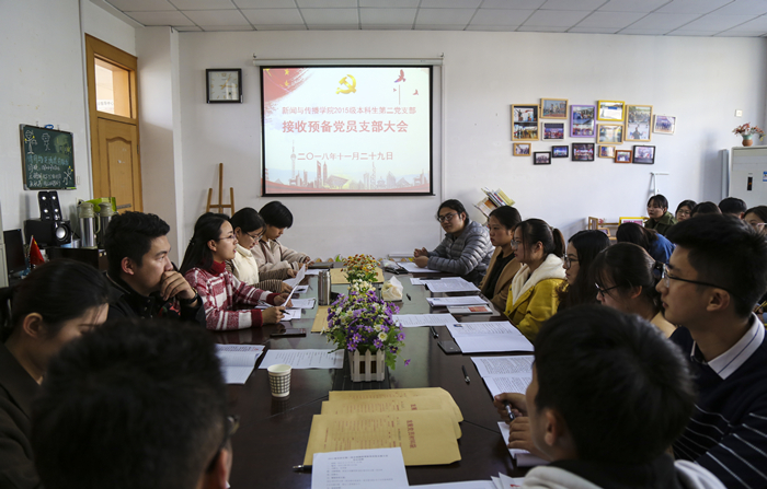 11月29日下午,德赢AC米兰合作伙伴2015级本科生第二党支部在院三楼会议室召开支部大会,讨论接收预备党员等相关事宜。会议由支部书记余梦雅主持,全体支部党员、2018年下半年9名发展对象及部分入党积极分子代表共同参会。