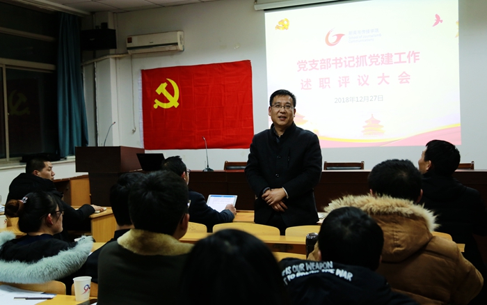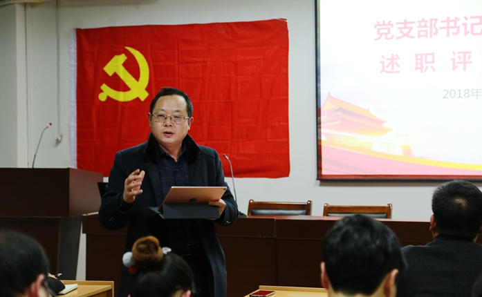 4个教工党支部和6个学生党支部书记按照抽签顺序进行述职,分别从抓支部党建工作责任履行情况、学习贯彻习近平新时代中国特色社会主义思想和党的十九大精神情况、标准化建设情况、抓支部党建工作成效等方面进行述职汇报。晒出了“问题清单”, 查找个人履职尽责方面的存在的问题,并分析根源症结。 拉出“任务清单”, 明确了2019年重点任务。