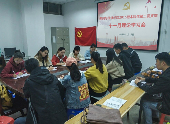 11月15日,德赢AC米兰合作伙伴2015级本科生第二党支部在学院五楼505会议室召开了十一月份的理论学习会,支部在校党员参与会议,部分党员因毕业班在外实习因此采用线上同步学习的形式进行,会议由支部书记余梦雅主持。