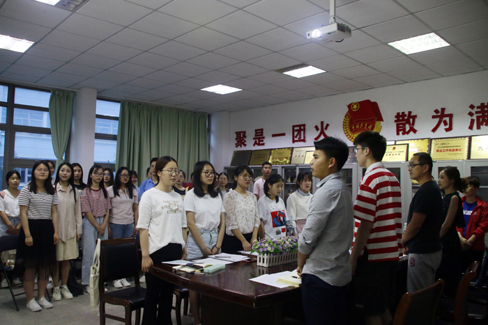 晚上7点,大会在国歌声中拉开序幕。宣智丽、汪悦、郭雪萍等8名发展对象依次从入党动机、思想认识、个人履历、家属及主要社会关系情况、自我认知以及需要向党组织说明的问题向大会进行了汇报和表态,与会党员、入党积极分子代表也从学习、工作和生活的细节点滴分别对8名同学做出中肯评价。