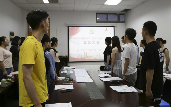 余梦雅首先向大会报告到会情况,奏唱国歌后,转正申请人陈文龙、陈文奥、廖明、杨康康、李曼5名同学分别从思想、学习、工作、生活等方面逐个向支部大会汇报了个人在预备期期间的成长进步及缺点不足,并向支部提出转正申请。随后,入党介绍人余梦雅、王思哲就5位预备党员在预备期间的专业学习、工作生活、思想理论学习等情况向大会做了详细介绍,并对其能否转正表明意见。接着,支部书记余梦雅代表支委会介绍5名转正申请人在预备期的表现教育和考察情况,表明支委会同意其转为正式党员的意见。