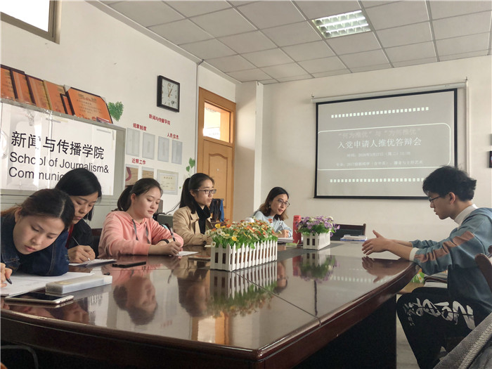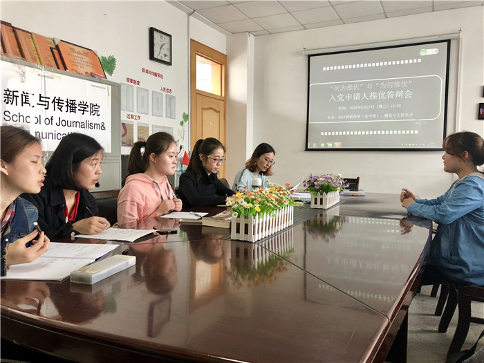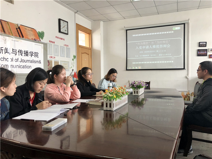 为进一步推进入党推优工作的过程性教育与管理,3月27日中午,2017级新闻(含中英)与播音专业入党申请人推优答辩会于德赢AC米兰合作伙伴三楼学生会办公室如期举行。本次推优答辩会由张虹老师主持,团支部书记与团支委成员参与评议,与会者共计三个专业29人,其中参与答辩者18人。本次入党推优答辩会恪守“公平、公正、公开、择优”的原则,结合参与答辩者的硬实力(职位、成绩)与软实力(答辩内容)进行民主评议与分析,最终在18名同学中推选出6名同学作为入党积极分子,并推荐至入党积极分子培训班学习。