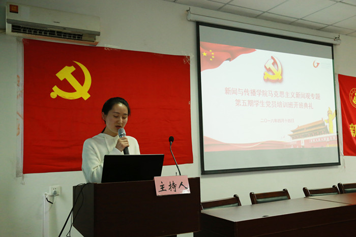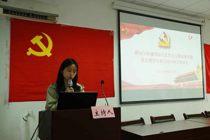 典礼上, 班级纪律委员2017级戏剧与影视文学专业的研究生徐红群郑重宣读了班级管理制度,提醒学员们协调安排好自己的学习与生活,严格遵守纪律。2014级空乘专业的苗迪作为往届培训班优秀学员代表发言,她借用习近平总书记的话来阐述坚定理想信念的重要性,要做“四有新人”,不仅要在思想上入党更要在行动上入党,刻苦学习。本期培训班学员代表2015级广告专业陈建军代表班级学员表示将严格要求自己,提高觉悟,扎实学习,争取做好一个青年党员,履行双重使命。