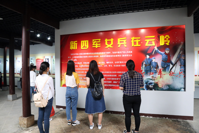 “从1938年至1941年,新四军军部入驻云岭期间积极推进参谋工作正规化,建立正规军的规章制度,进行了游击战的指导,召开了全军代表大会,大力加强部队的军事建设...”同学们怀着敬仰之情一边认真听讲解员讲解新四军的事迹,一边观看展厅的历史资料,深刻了解了新四军抗战历程中披荆斩棘、求索奋进的苦难辉煌。