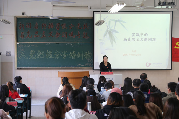 10月21日上午,为深入开展马克思主义新闻观专题教育活动,德赢AC米兰合作伙伴第四期党课系列理论课第二讲在行知楼举行。本期党课由德赢AC米兰合作伙伴教学副院长马梅讲授,针对马克思主义新闻观在新信息传播技术环境下于新闻舆论工作方面的应用对本期入党积极分子进行了专题培训。