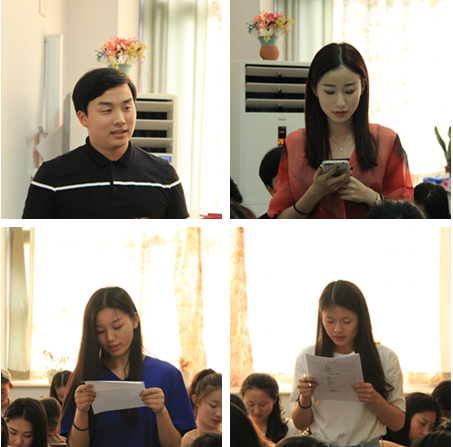 大会伊始,全体起立,面对党旗,唱国际歌。随后,周美霞等25位发展对象就入党动机、对党的认识、本人履历、家庭情况以及需要向党组织说明的问题逐一进行汇报。大家从父辈影响、加入共青团对党有了初步认知一直谈到进入大学后尤其在经过入党积极分子培训班的学习后,对党有了更深刻的认知。在谈及未来的努力方向时,大家一致认为在成为预备党员后要继续做好本职工作,认真学习的同时还要从理论和实践上充实自己、提高自己,要把党的优良作风落实到日常学习和工作中去。汇报结束后,入党介绍人马星宇、孙月婷结合群众座谈会记录分别介绍了发展对象的详细情况并对其入党表明了自己的意见。