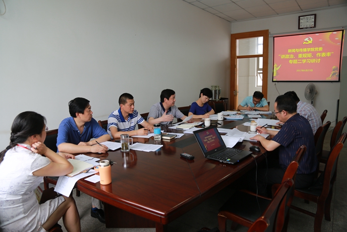 学习会后,班子成员围绕“讲政治、重规矩、作表率”与落实部校共建和思政会议精神的关系、全国高校思想政治工作主要精神、部校共建的主要目标与任务、马克思主义新闻观及马克思主义新闻人才的主要内涵、立足本职岗位落实部校共建和思政会议精神的主要理念、举措与成等内容展开了学习讨论,领导班子成员逐一发言。执行院长杨柏岭结合学院工作实际,指出德赢AC米兰合作伙伴作为首批十所全国试点部校共建新闻学院之一,讲政治重规矩作表率,落实到我们学院的工作就是要做好部校共建工作和按照思政会议精神教书育人。落实部校共建和思政会议精神是讲政治重规矩作表率的必然要求,要在落实部校共建的各项工作中和按照思政会议精神教书育人的过程中讲政治重规矩作表率。学院培养的马克思主义新闻人才应该政治坚定、业务精湛、作风优良、党和人民放心。他提出,学院要强化“人才是第一资源”意识,以“人品、特长、贡献”为人才标准,树立以发展为导向的价值观。