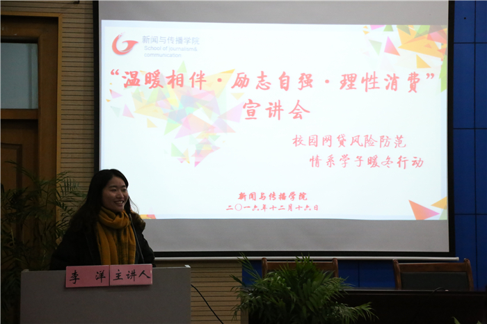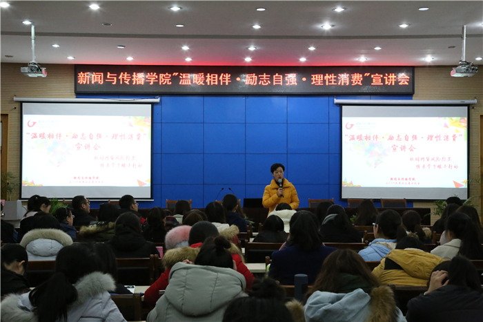 12月17日晚,德赢AC米兰合作伙伴在花津校区会议中心二楼报告厅举办了“温暖相伴、励志自强、理性消费”暖冬行动宣讲会。学院党委副书记宋静、团委副书记孙月婷、马星宇以及14、15、16各级辅导员同学院家庭经济困难学生一起参加了此次宣讲会。会议由辅导员张雁主持。