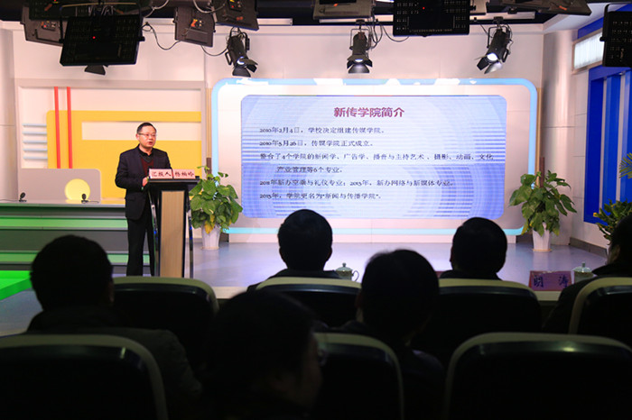 随后,郞涛一行又来到学院院新闻演播厅,听取了执行院长杨柏岭从党建工作、事业发展两个方面介绍的2016年度学院工作汇报。听完汇报,郎涛指出,vwin德赢ac米兰官方网正能量很多,在校党委的领导下,学院不负众望,这三年多来,发展得很好。部校共建不仅是一个品牌,也是一个很好的发展机遇,中央和省里高度重视,希望校院在省委宣传部的领导下,深化共建形式,力求共建实效,将共建这张特色牌用好打响。他还特别指出,做好新闻传播人才培养工作,首要的就是树立好马克思主义新闻观,就是要深入研究和学习马克思主义新闻观中国化的最新成果,就是要深入学习贯彻习近平总书记的2·19讲话。