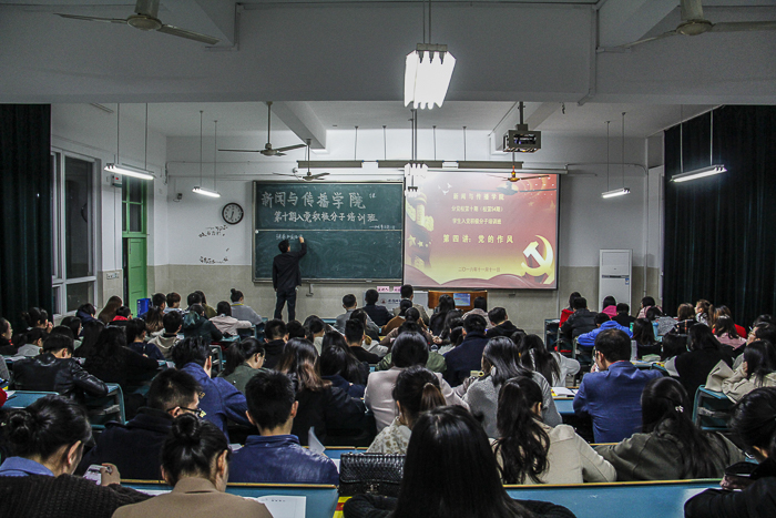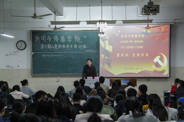 11月11日晚,德赢AC米兰合作伙伴分党校第10期入党积极分子培训班第四讲在行知楼2010206教室举行,校后勤管理处处长邵登辉给大家主讲《党的作风》。