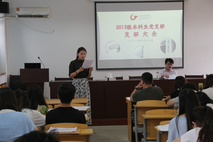 支部大会是入党的必要程序,也是对党员同志的一次教育大会。申请转正的20位预备党员纷纷表态,要继续追求进步,严格要求自己,努力成为一名优秀的共产党员。会议尾声,陈德洋对此次会议进行了总结,他对转正的同学们表示衷心的祝贺并给予殷切的希望,希望他们在“两学一做”的学习教育中进一步强化自我学习,自我教育,在接下来的期末考试中诚信考试,充分体现党员的先进性,真正起到党员的模范带头作用。(文/曹青青)