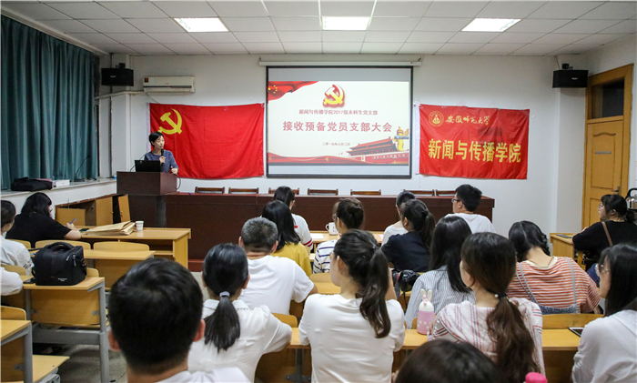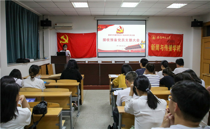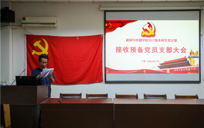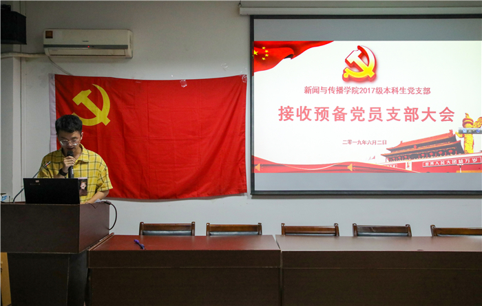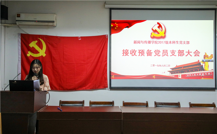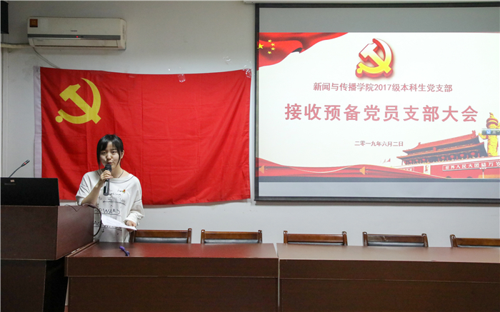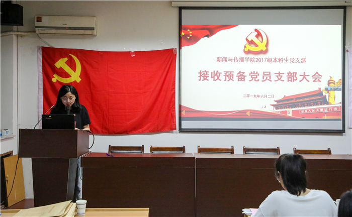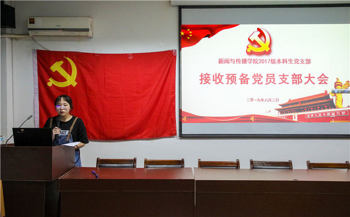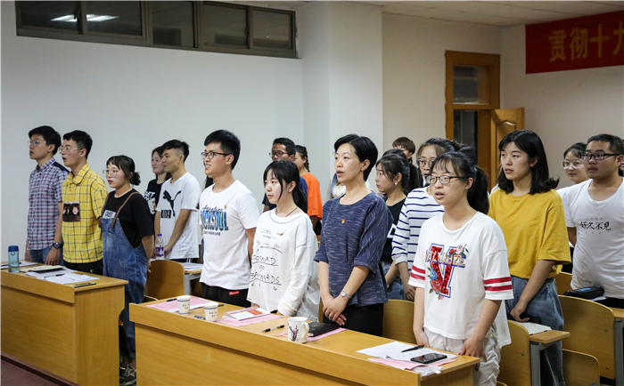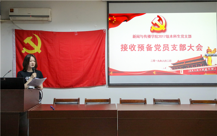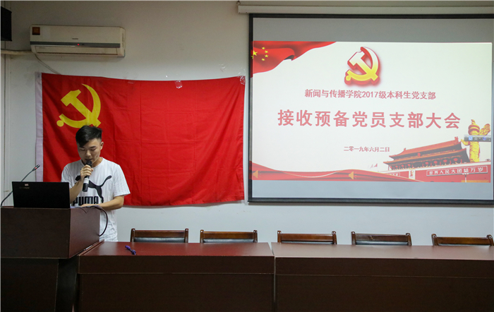 6月2日,2017级本科生党支部在学院四楼会议室召开党支部大会讨论接收预备党员事宜。会议由党支部书记张雁主持,学院党委副书记宋静、支部委员徐晨、杨馨艺、樊金坦和部分入党积极分子参会会议。