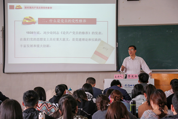 两个小时的授课中,季爱新以清晰的思路,引经据典,旁征博引,结合生动具体的案例,揭示了加强党性修养的重要性和必要性,他以“高山仰止,景行行止。虽不能至,然心向往之”激励青年学生党员锤炼党性修养,强化使命担当,争做合格党员。(文/吴一杰 图/周林)