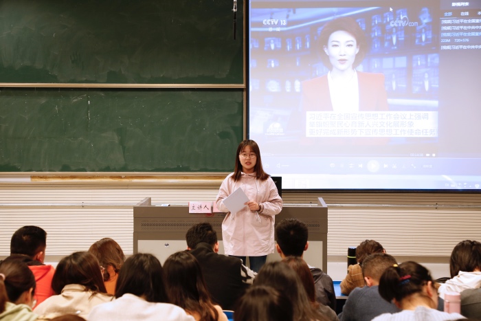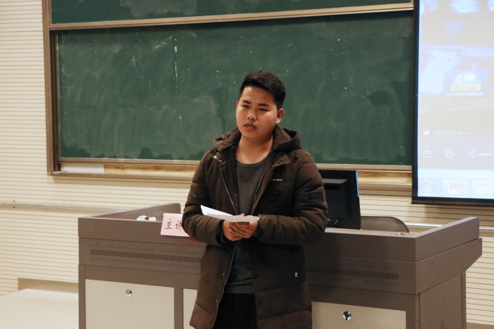 视频播放完毕,各小组学生代表上台进行自由分享。2015级新闻学专业学生宣智丽结合自身在媒体的实习经历,与大家分享了视频观后感。2015级播音与主持艺术专业邹升浩从自身实习实践经历出发,结合视频学习素材,积极分享自己的所见所闻所想。其余同学则从新闻反转、后真相、当代新闻人等角度,畅谈自己的所思所想。