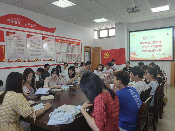 9月19日下午,德赢AC米兰合作伙伴研究生第二党支部在学院508召开“不忘初心、牢记使命”主题教育动员大会 。研究生第二党支部书记高月担任主讲,全体党员及部分积极分子一同参加。