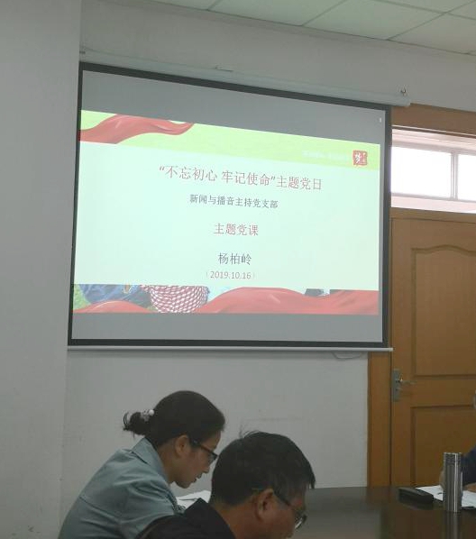 10月16日下午,在学院楼508教室,院党委委员、执行院长杨柏岭以“守正创新:‘不忘初心,牢记使命’主题教育的理路”为题,给新闻与播音主持党支部全体成员讲了一堂别开生面的党课。本次党课是落实党支部开展的主题党日活动和“不忘初心牢记使命”主题教育的具体行动上,党支部全体成员共同聆听了这次党课。