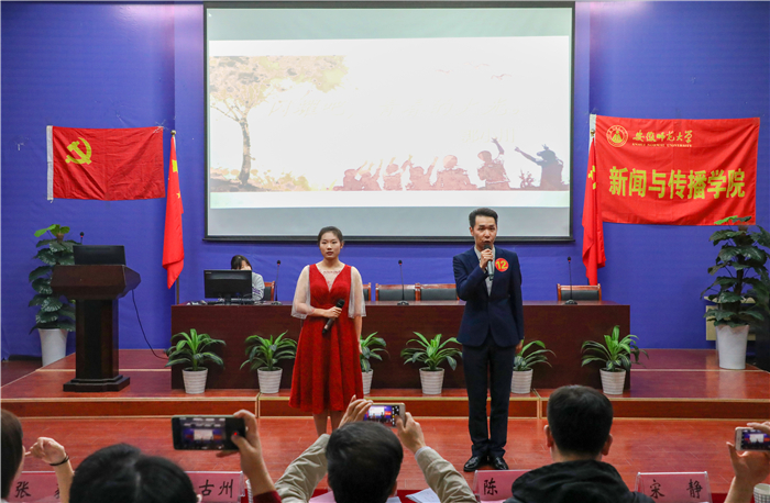 山河为证,岁月为名,70年披荆斩棘,70年风雨兼程,一路走来,中国青年与祖国同行!为致敬70年峥嵘岁月,携手奋进新时代,德赢AC米兰合作伙伴于10月16日下午在行知楼2010307教室开展”不忘初心、牢记使命“主题党日活动,举办了“我和我的祖国”主题诗文朗诵比赛。校党委组织部组织科科长李古州、校团委组织部部长陈骁、德赢AC米兰合作伙伴关工委主任袁立庠、德赢AC米兰合作伙伴党委副书记宋静、德赢AC米兰合作伙伴新闻与播音党支部书记张荻共同担任此次比赛评委。学院各党支部书记、学生党支部党员代表、部分入党积极分子共同参加了此次活动。