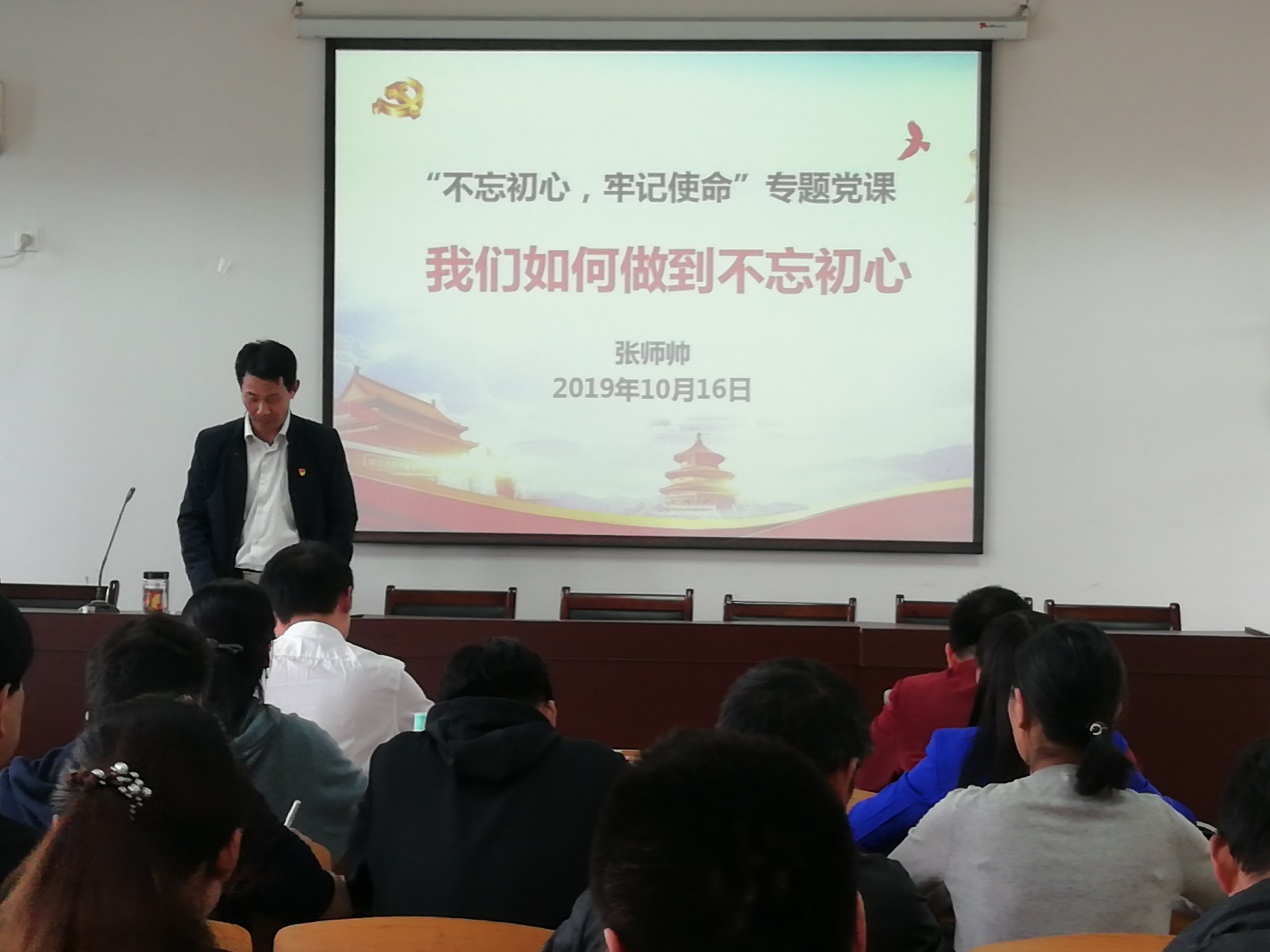张师帅以“我们如何做到不忘初心”为主题进行党课讲授。他以“从哪里来、向何处去、该怎么走”为脉络,结合党的发展历史,详细讲授了如何才能做到不忘初心。张师帅指出,每一名党员干部,必须始终铭记我们从哪里来——从马克思主义中国化的实践中走来、从最广大的人民群众中走来、从中华文明的传承中走来,同时,有思想才能引领未来,有方向才能扬帆远航。党员一定要坚持既定的目标、牢记远行的初衷,要向着实现共产主义远大理想的目标去、向着实现中华民族伟大复兴中国梦的目标去、向着实现人民对美好生活向往的目标去。张师帅强调党的发展历程告诫我们,不走错路必须与党同心,少走弯路必须与时俱进,力避邪路必须与民同行。要走绝对忠诚的光明之道、走敢于担当的有为之道、走廉洁律己的干净之道。