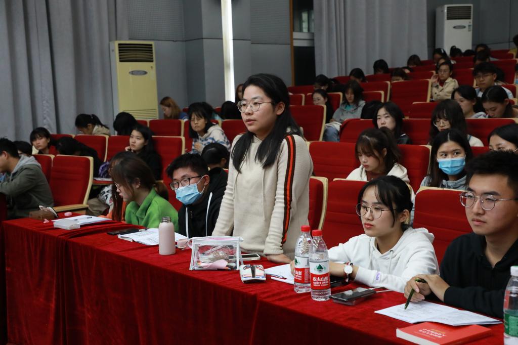 王刚老师分别从深入理解《习近平谈治国理政》第三卷时代背景,重要意义,内容,方法论,创新,基本要求,以及争做时代新人七个方面进行了深入浅出的生动讲述。他指出,中共十九大以来,习近平在领导推进新时代治国理政的实践中,发表了许多创新成果,新成果不仅帮助了广大干部群众更好的了解习近平新时代中国特色社会主义思想,而且加强了国际社会对“中国共产党为什么能、马克思主义为什么行、中国特色社会主义为什么好”的认识和理解。课上,王刚讲解到学习《习近平谈治国理政》第三卷,有助于系统把握习近平新时代中国特色社会主义思想的核心要义、精神实质、实践要求以及蕴含其中的马克思主义立场、观点、方法,并联系实际学,在知行合一、学以致用上下工夫。他叮嘱新传学子要理解《习近平谈治国理政》第三卷的意义,鼓励新传学子在新的时代肩负起决胜全面建设小康社会,夺取新时代中国特色社会主义的伟大胜利的重任。
