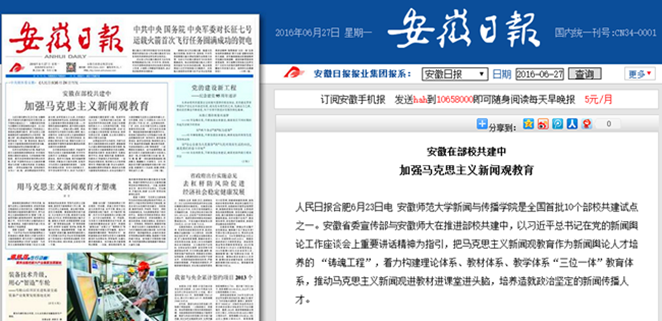 《安徽日报》头版头条报道我院部校共建工作