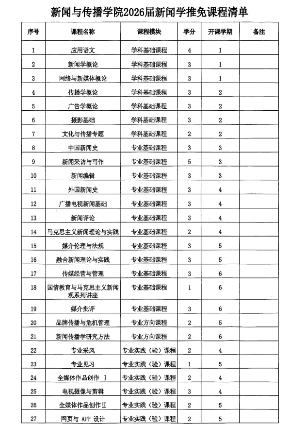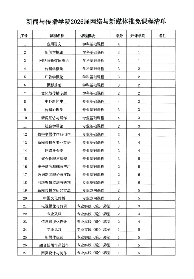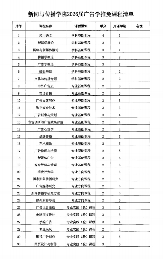 德赢AC米兰合作伙伴2026届本科生推免课程清单